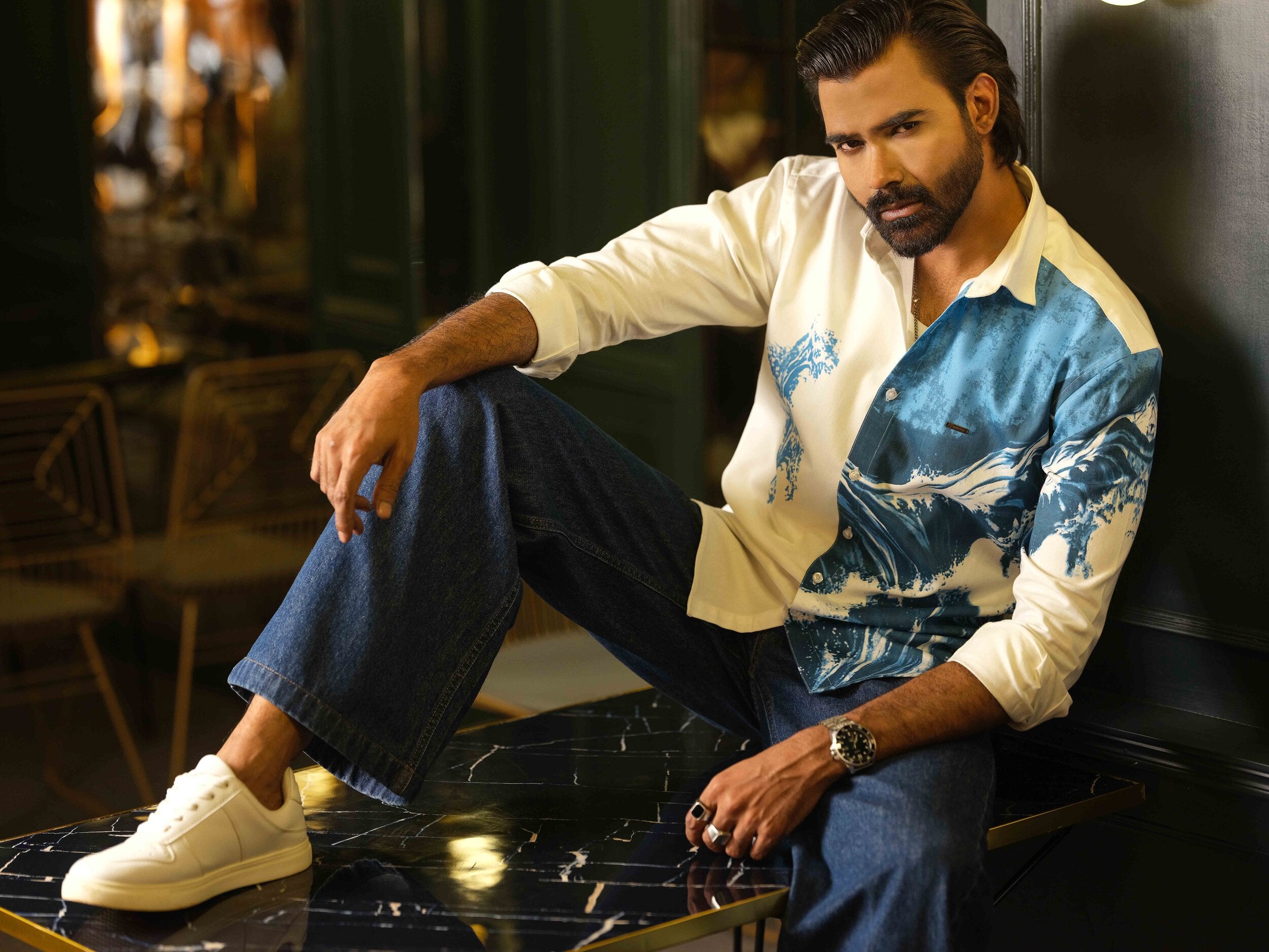 Green Blue print Premium Bamboo Silk Shirt