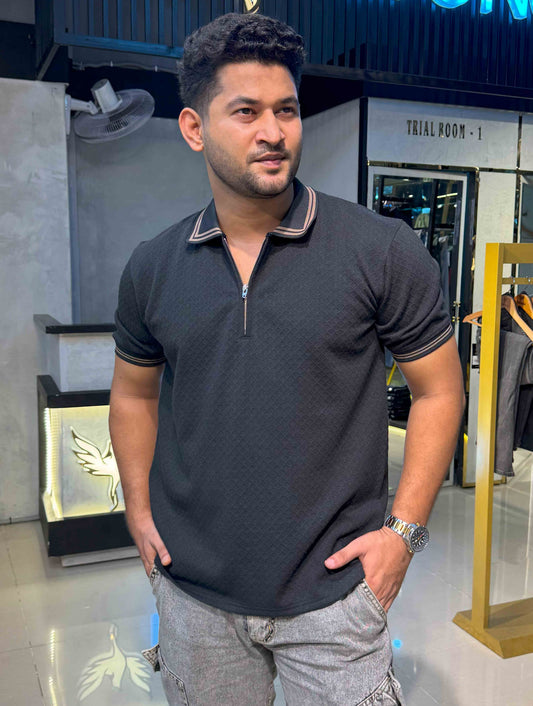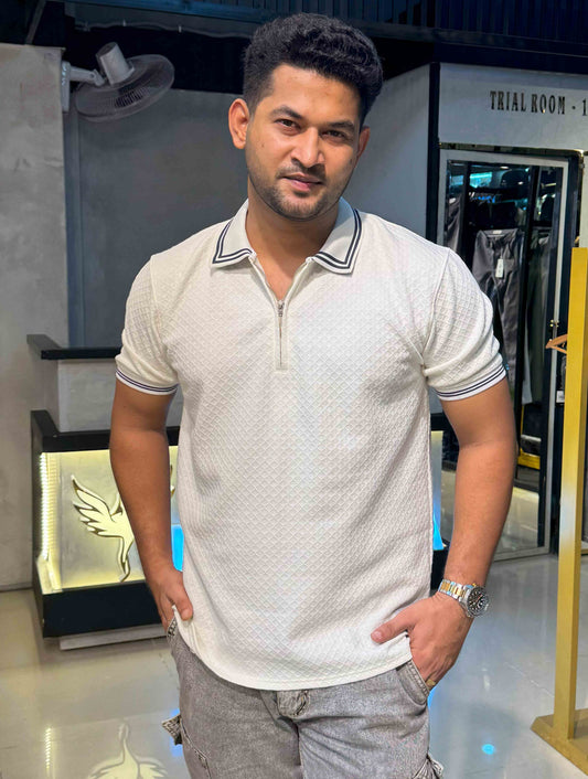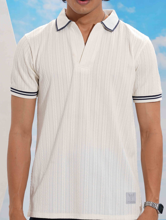 Bavarian Cream stripe contrast Premium Zipper Polo