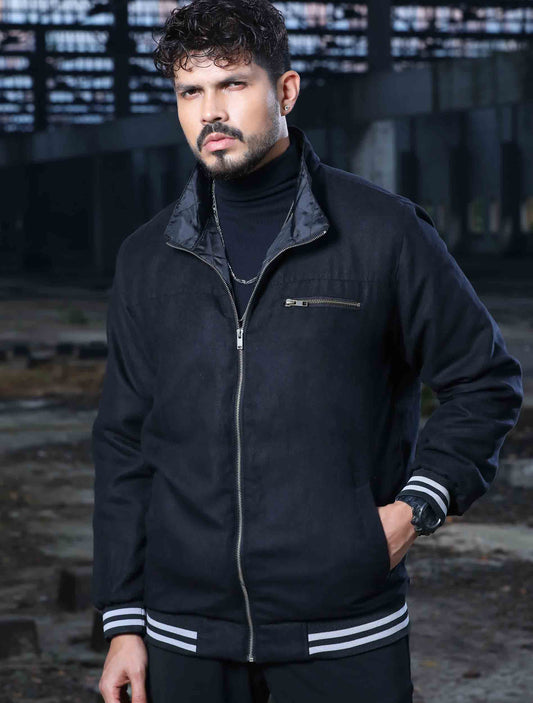 Coal black solid suede leather premium jacket