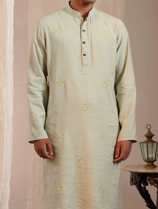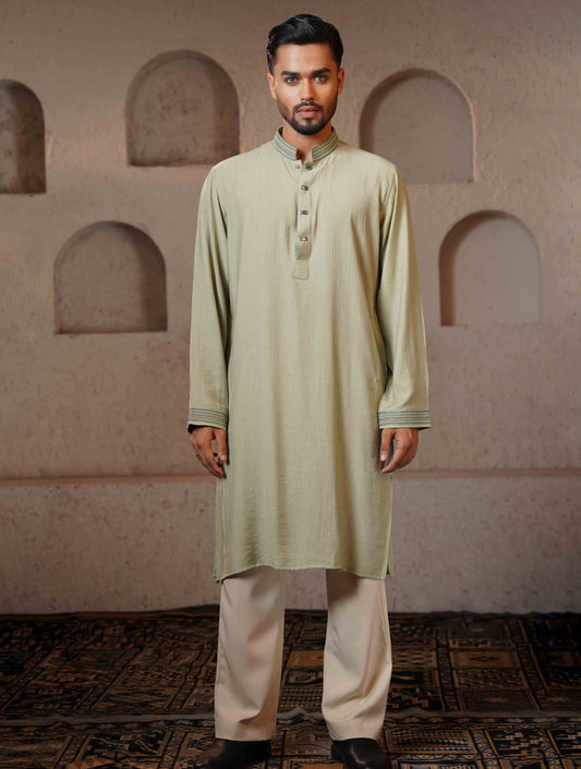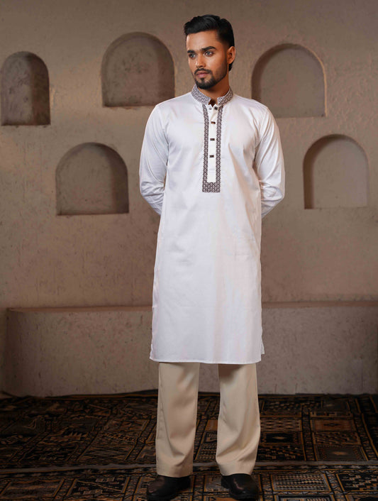 White Coffee Collar and Cuff Embroidery design Premium Panjabi
