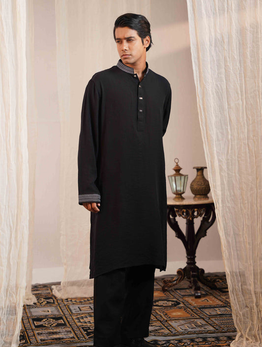 Dark chocolate black collar cuff Embroidery premium Panjabi