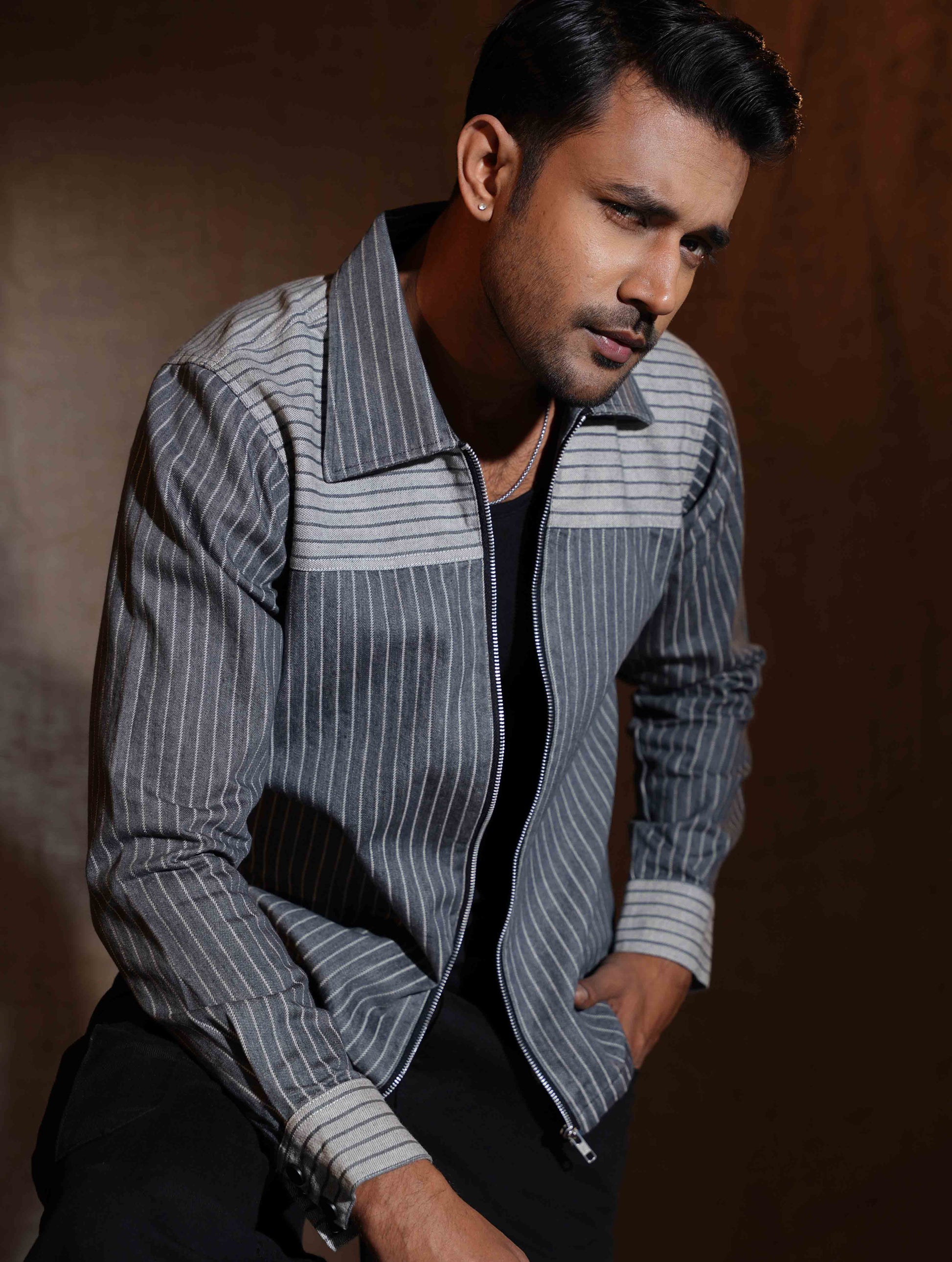 Gray Ash stripe Shoulder Contrast zipper jacket