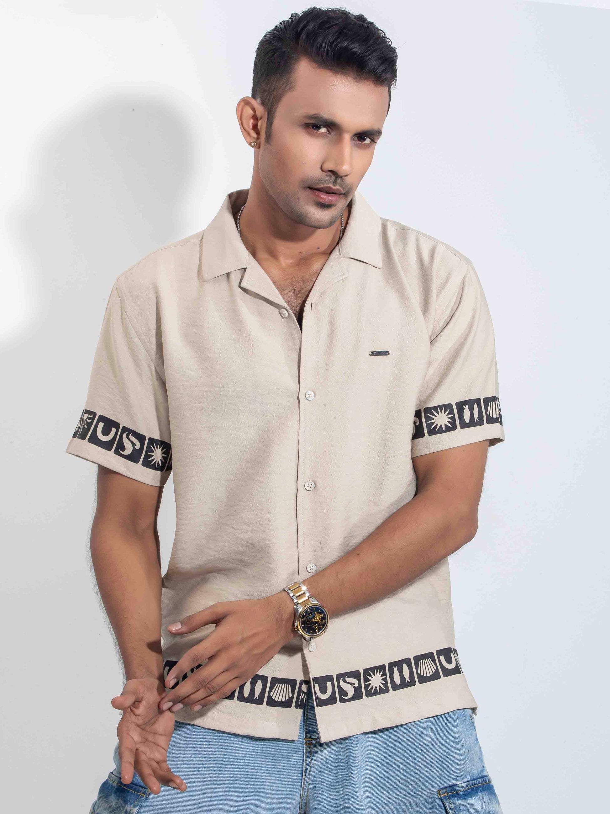 Khaki color hand and waist printed Havana shirt