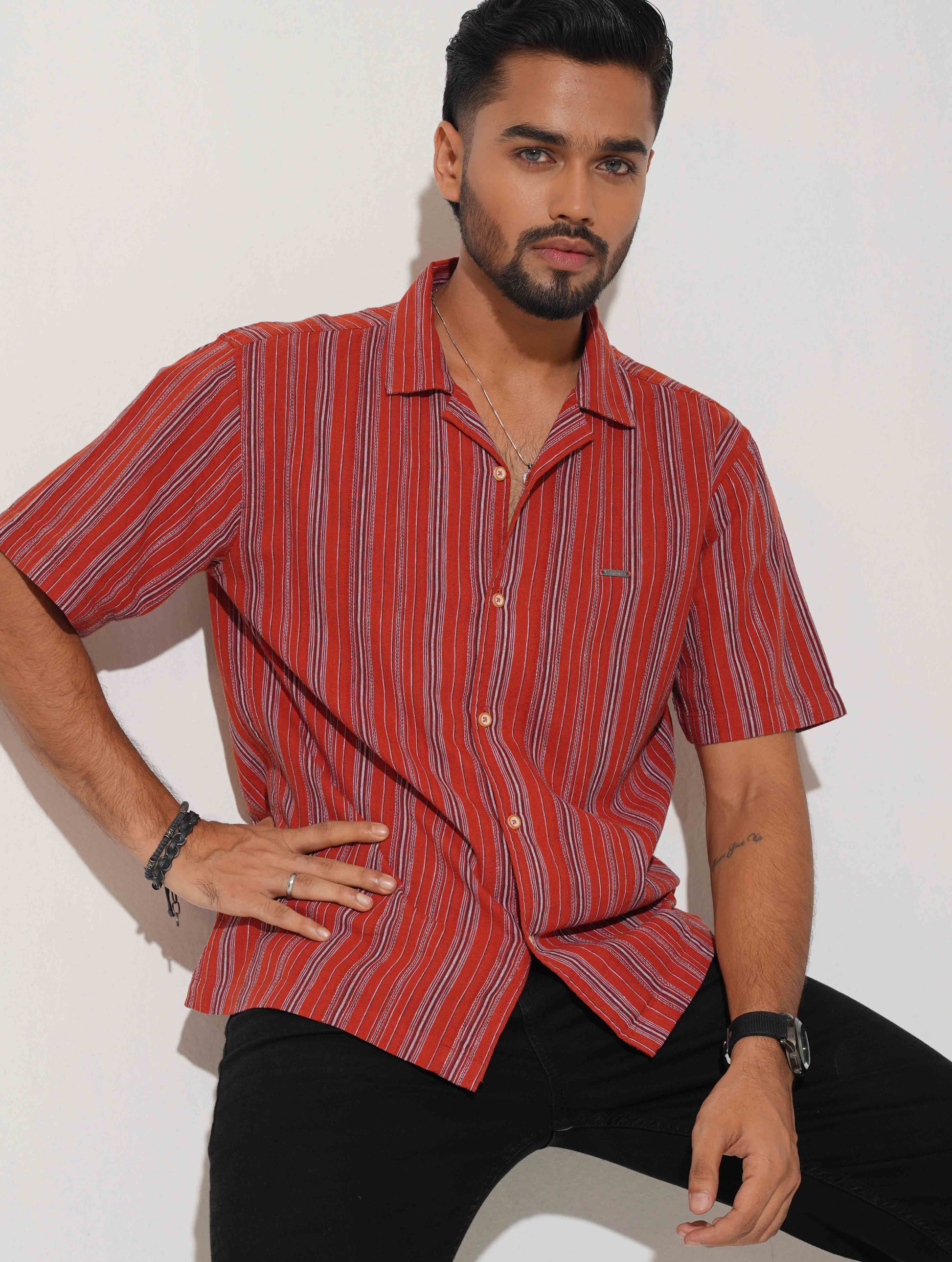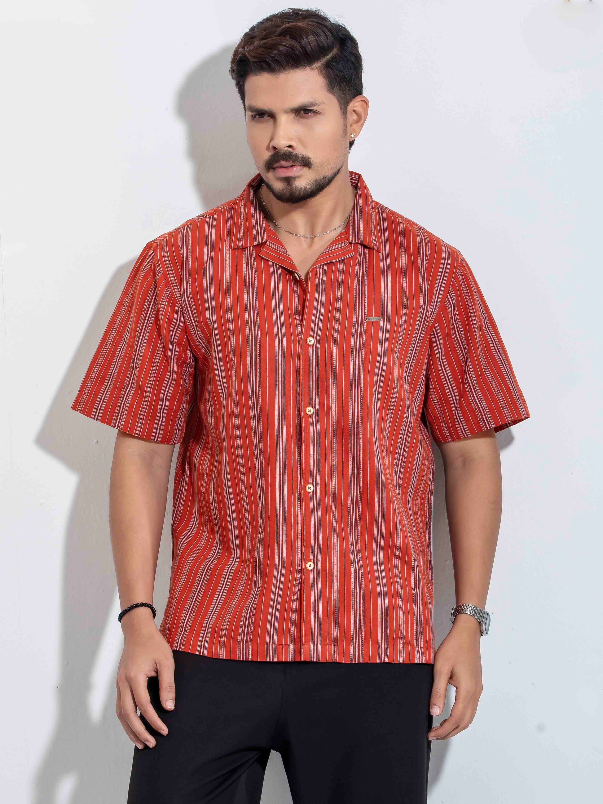 Tomato Red stripe Remi cotton Havana shirt