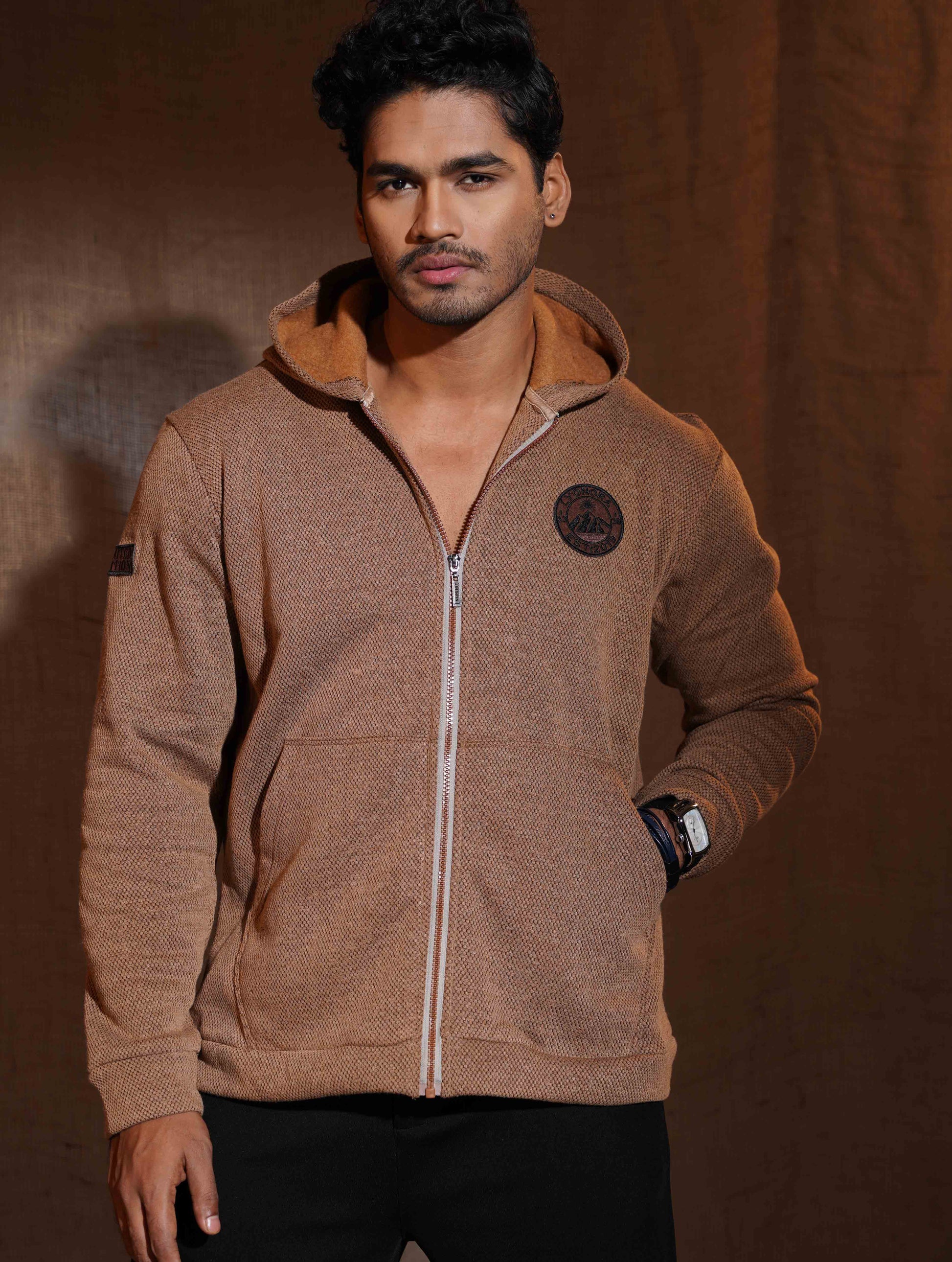 Bronze Orange Jacquard Knit Zipper Hoodie